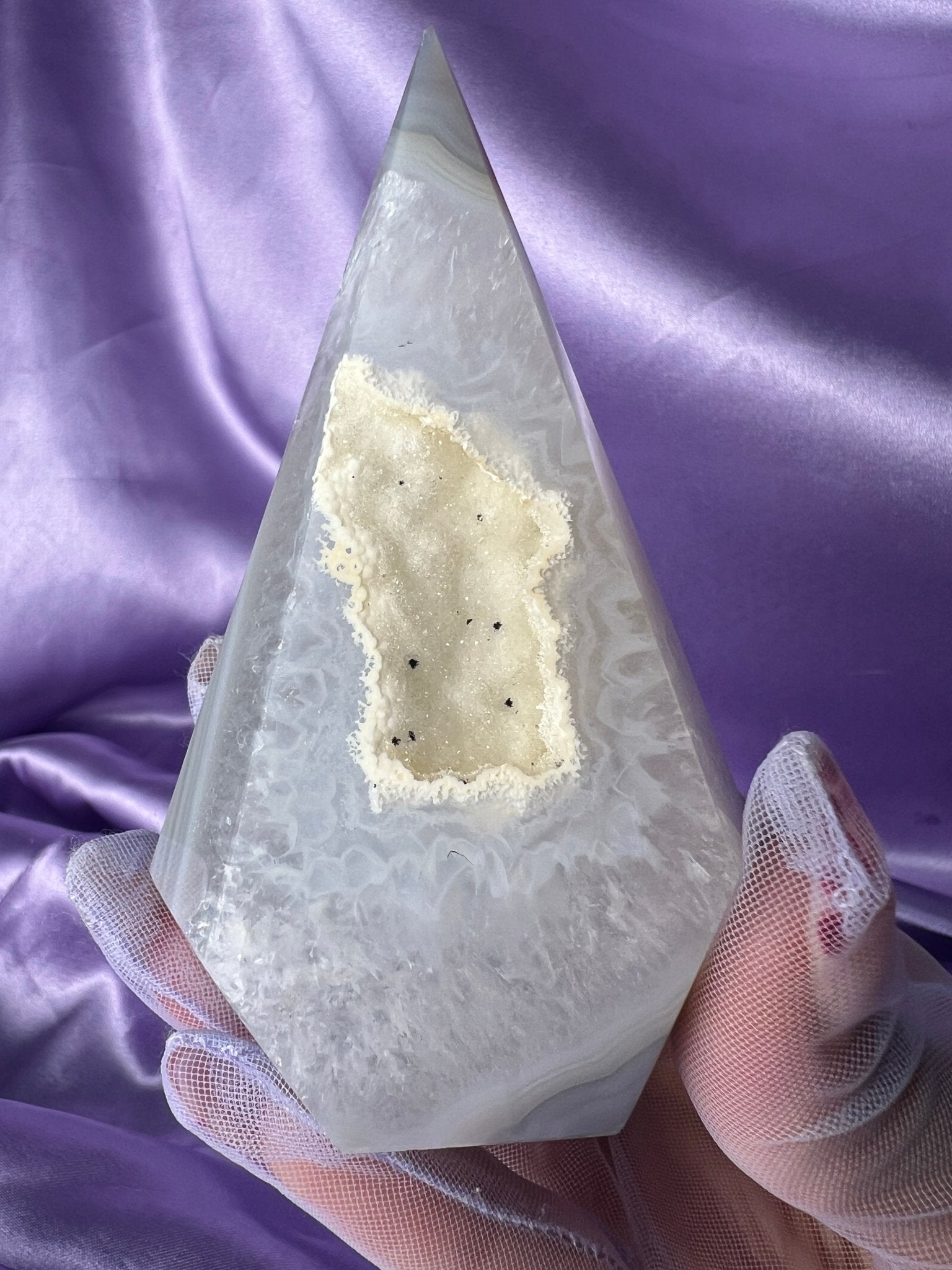 Agate Pyramids are calming, protective, and energetically clarifying. Known to ease overwhelm and support clear communication, these pieces help quiet mental noise while keeping you grounded in your truth.